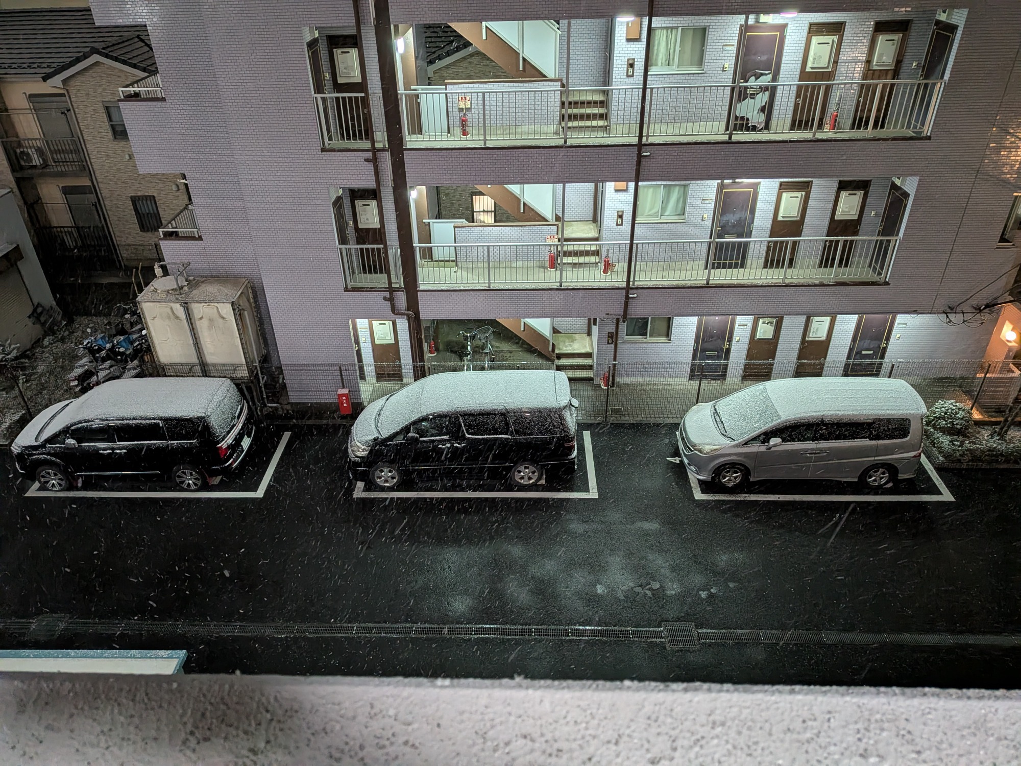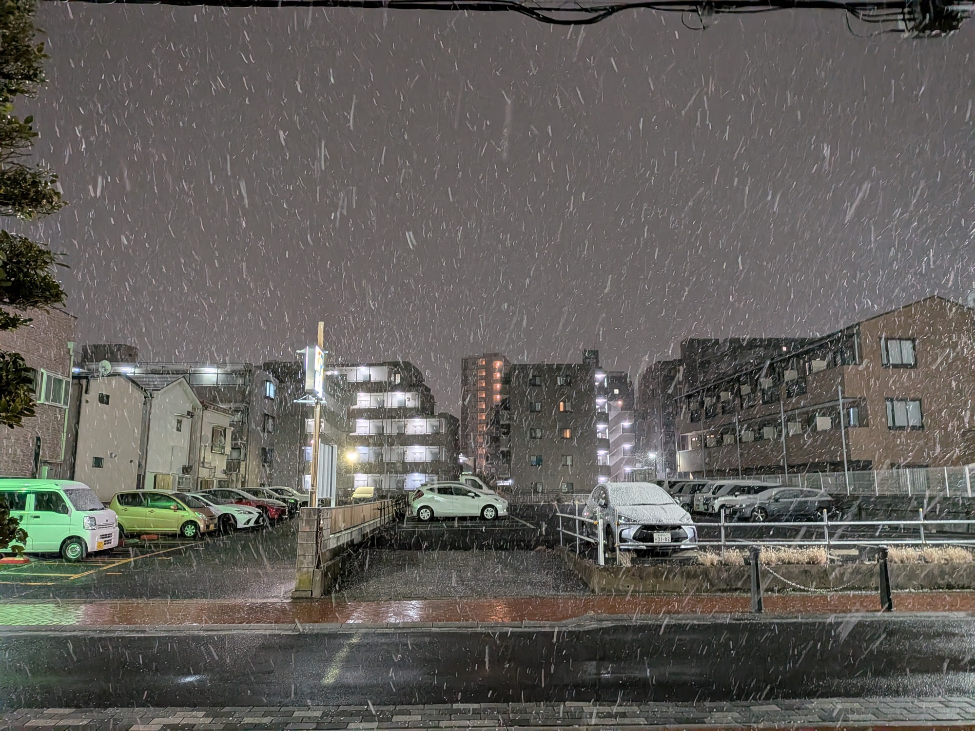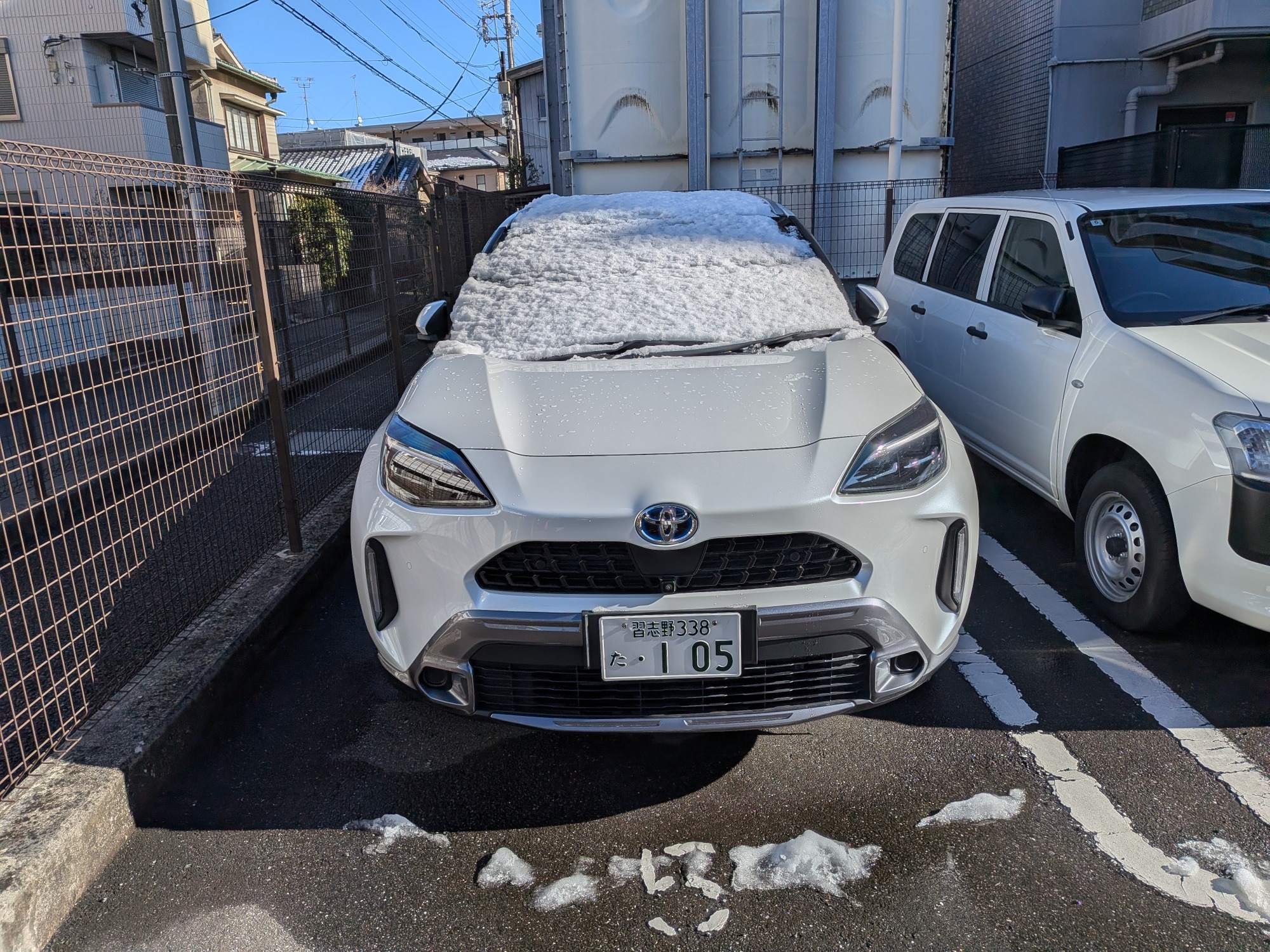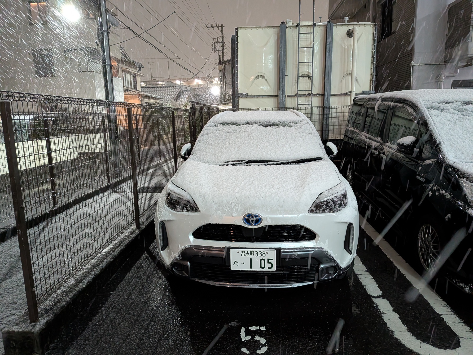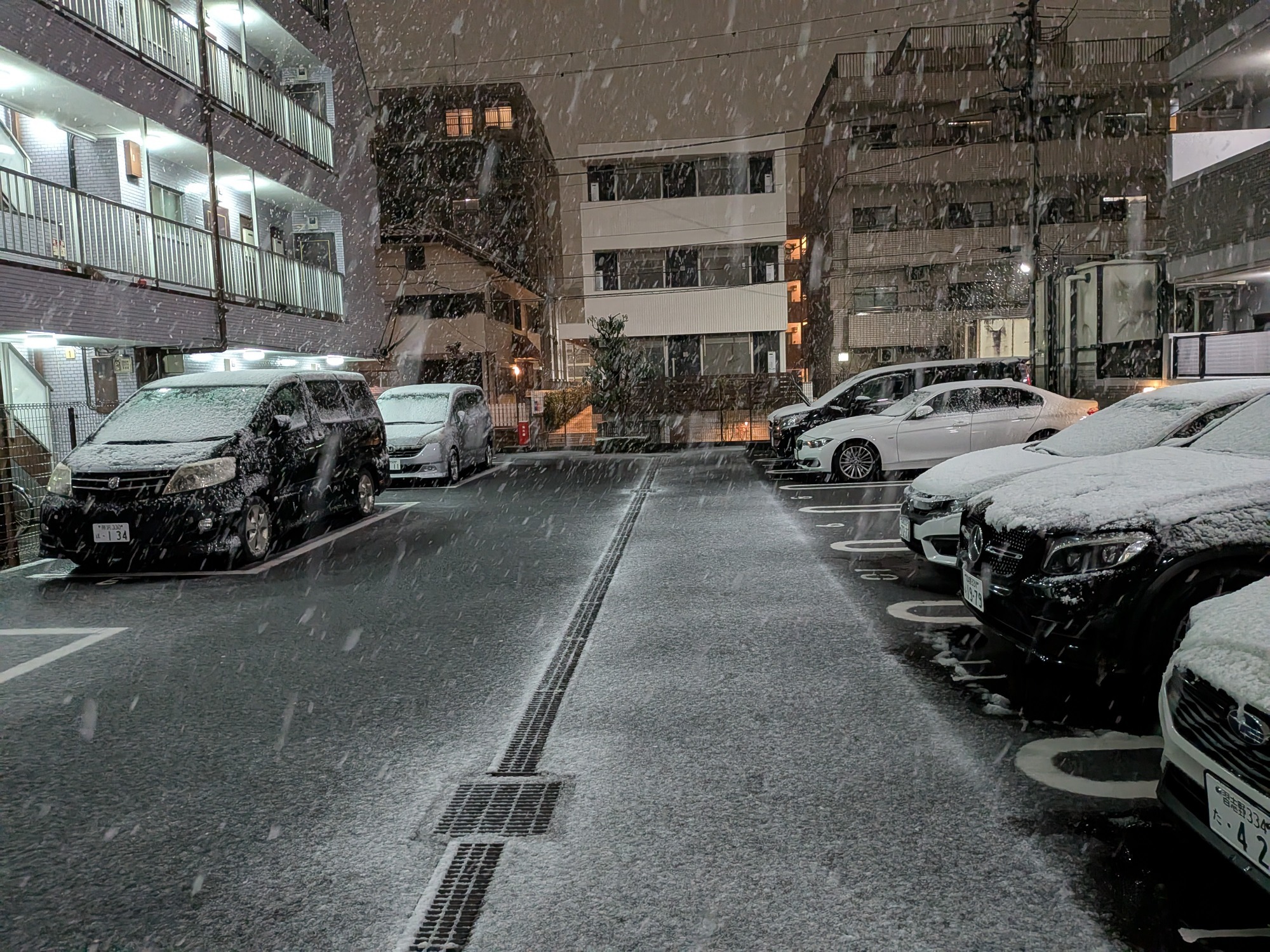 駐車場にもけっこうな雪が積もり始めていました(;゚Д゚)