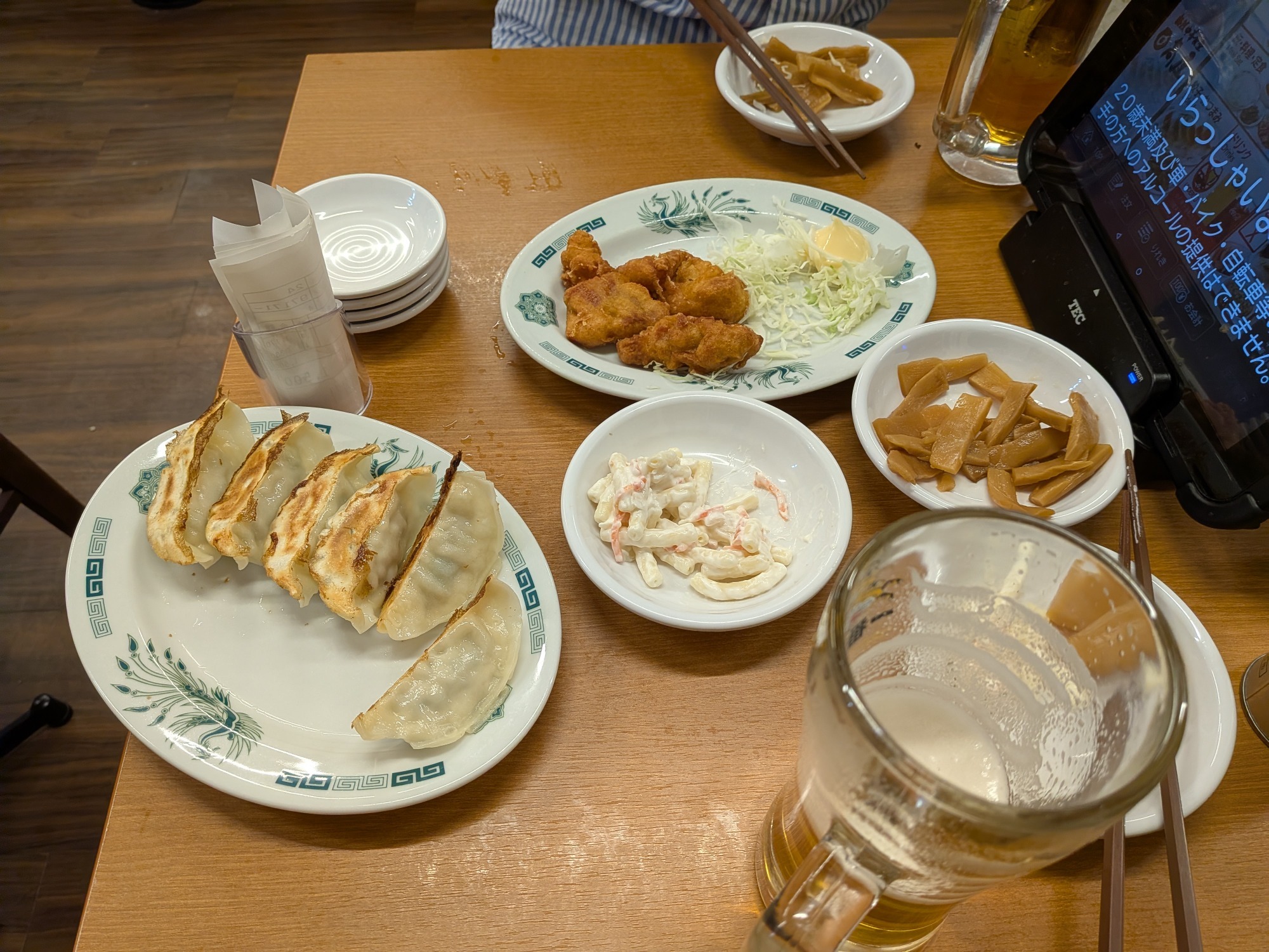 餃子に辛味チキン、生姜焼きでけっこうビール飲みました🍺🍺🍺🍺