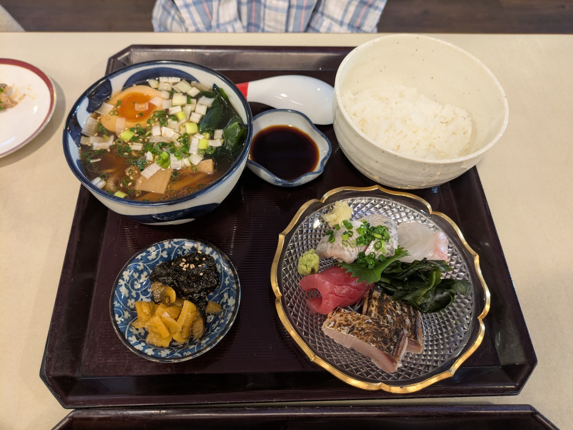 潤子さんがお願いした刺身定食とミニラーメン🍜のセット