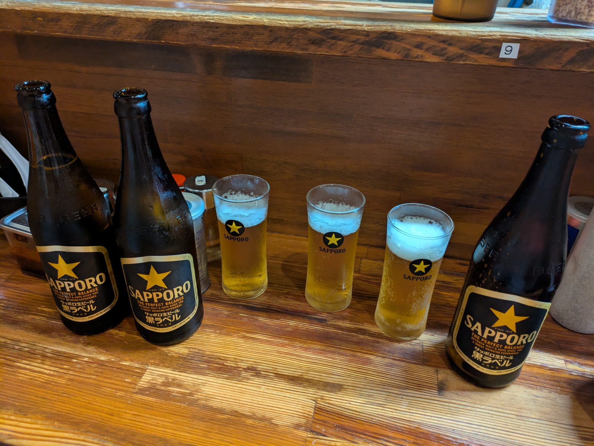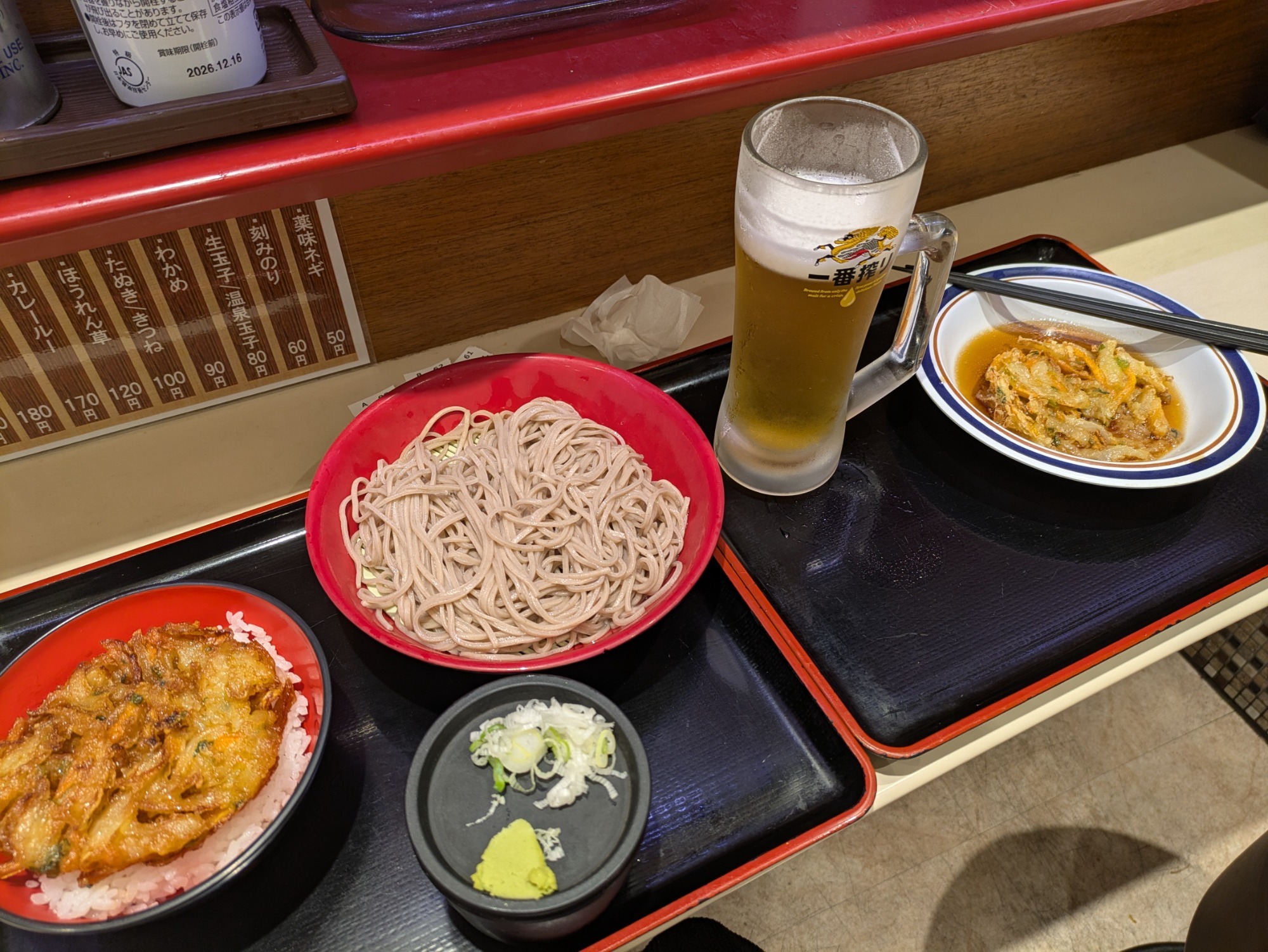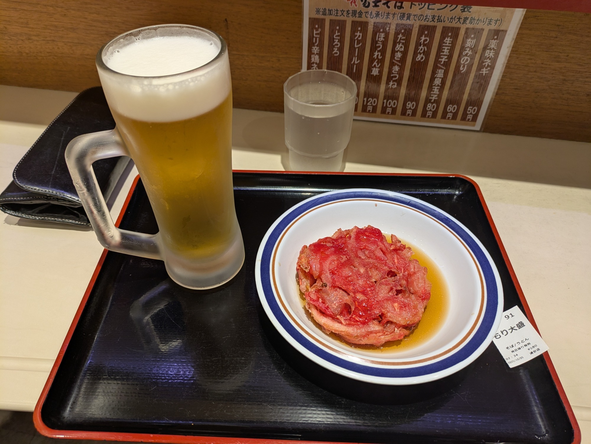 みんなはいきなり蕎麦でしたが自分だけおつかれビール🍺(゚∀゚) 紅天はつまみです(*´Д`)