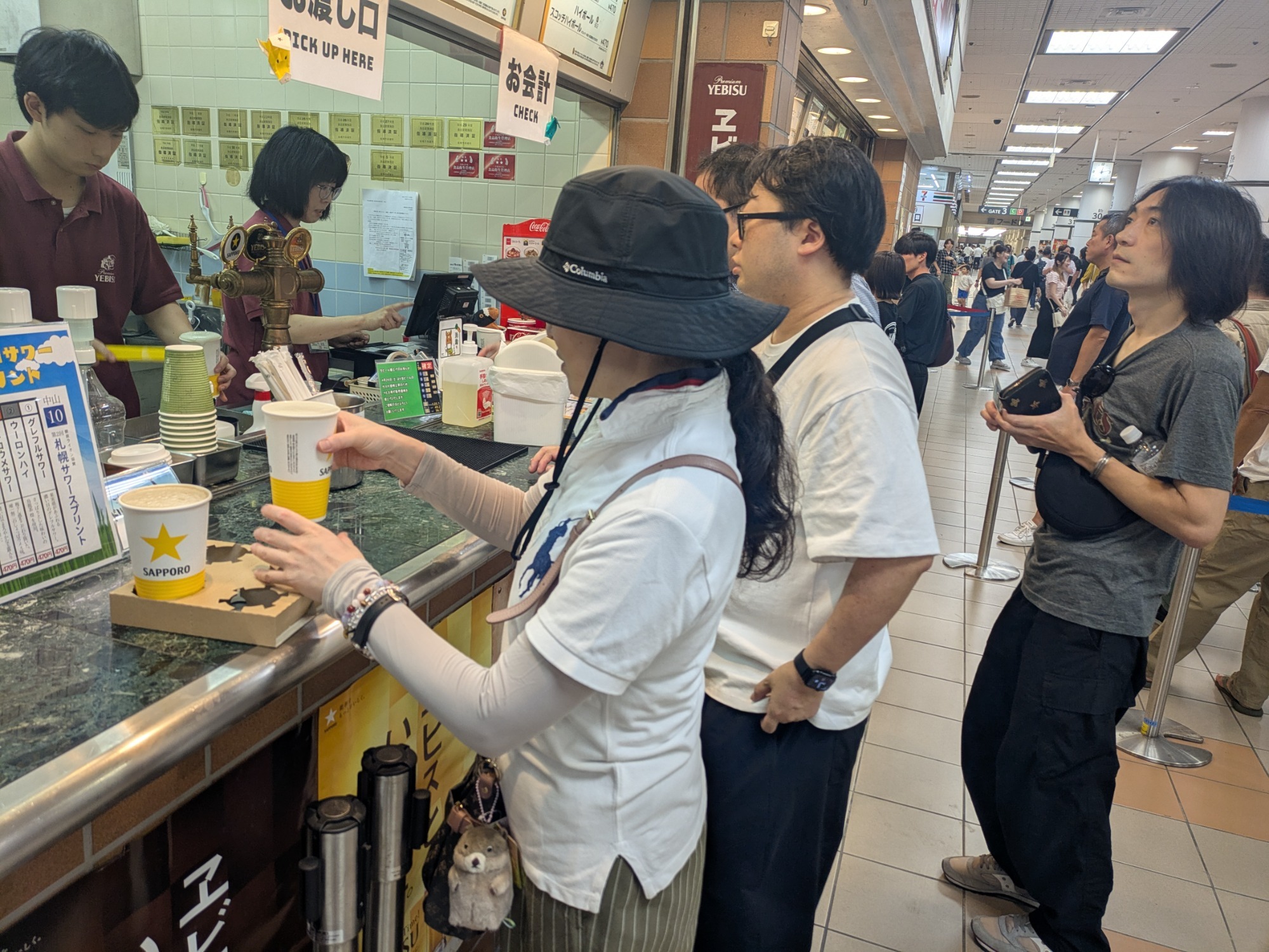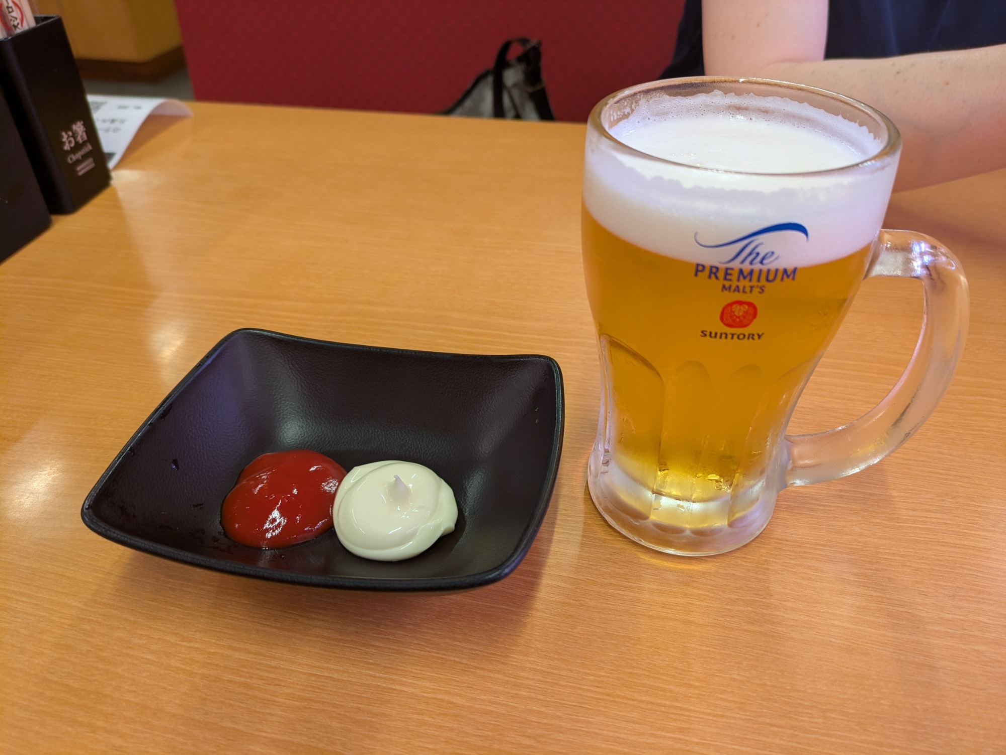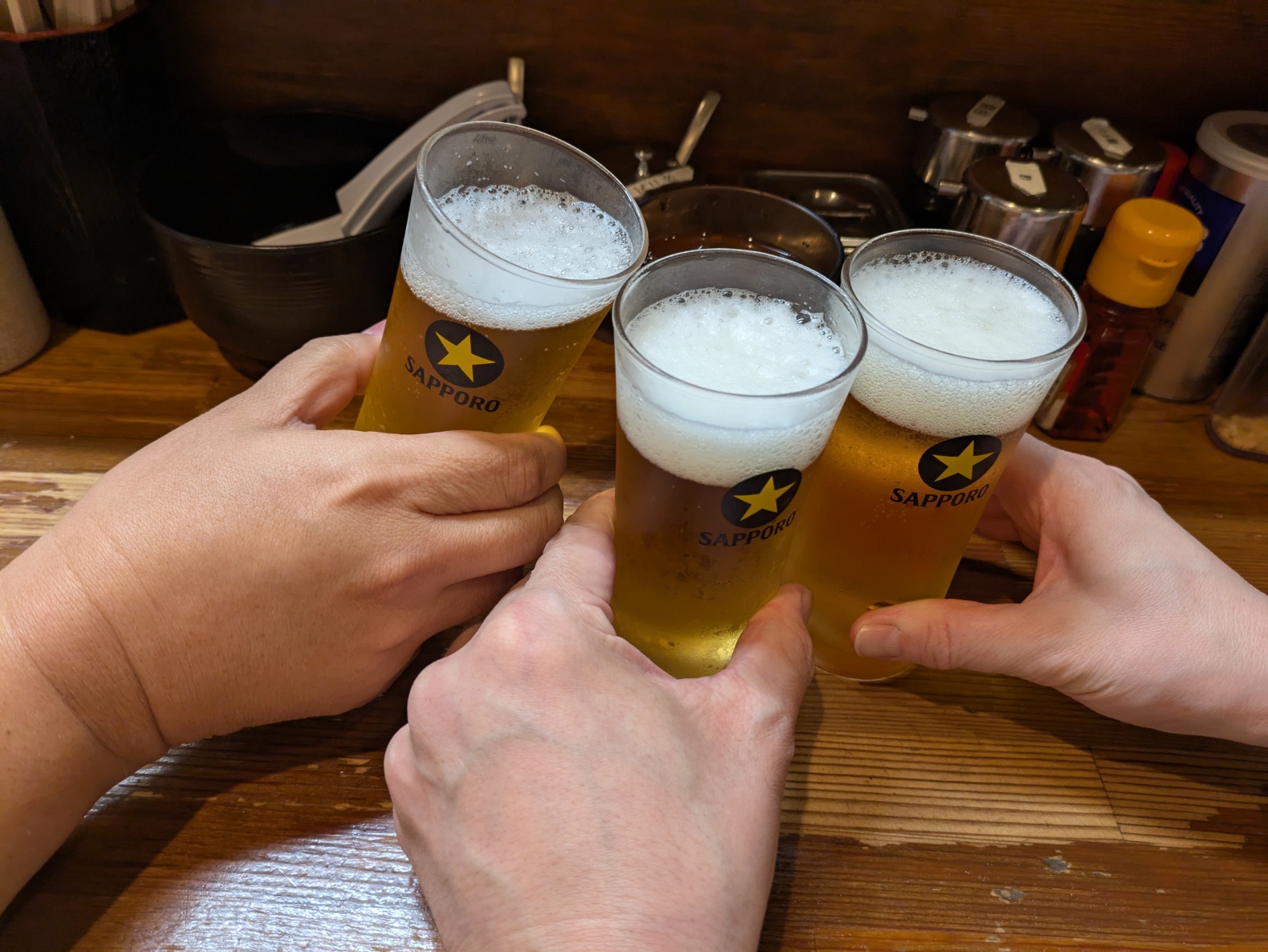 みんなはいきなり蕎麦でしたが自分だけおつかれビール🍺(゚∀゚) 紅天はつまみです(*´Д`)