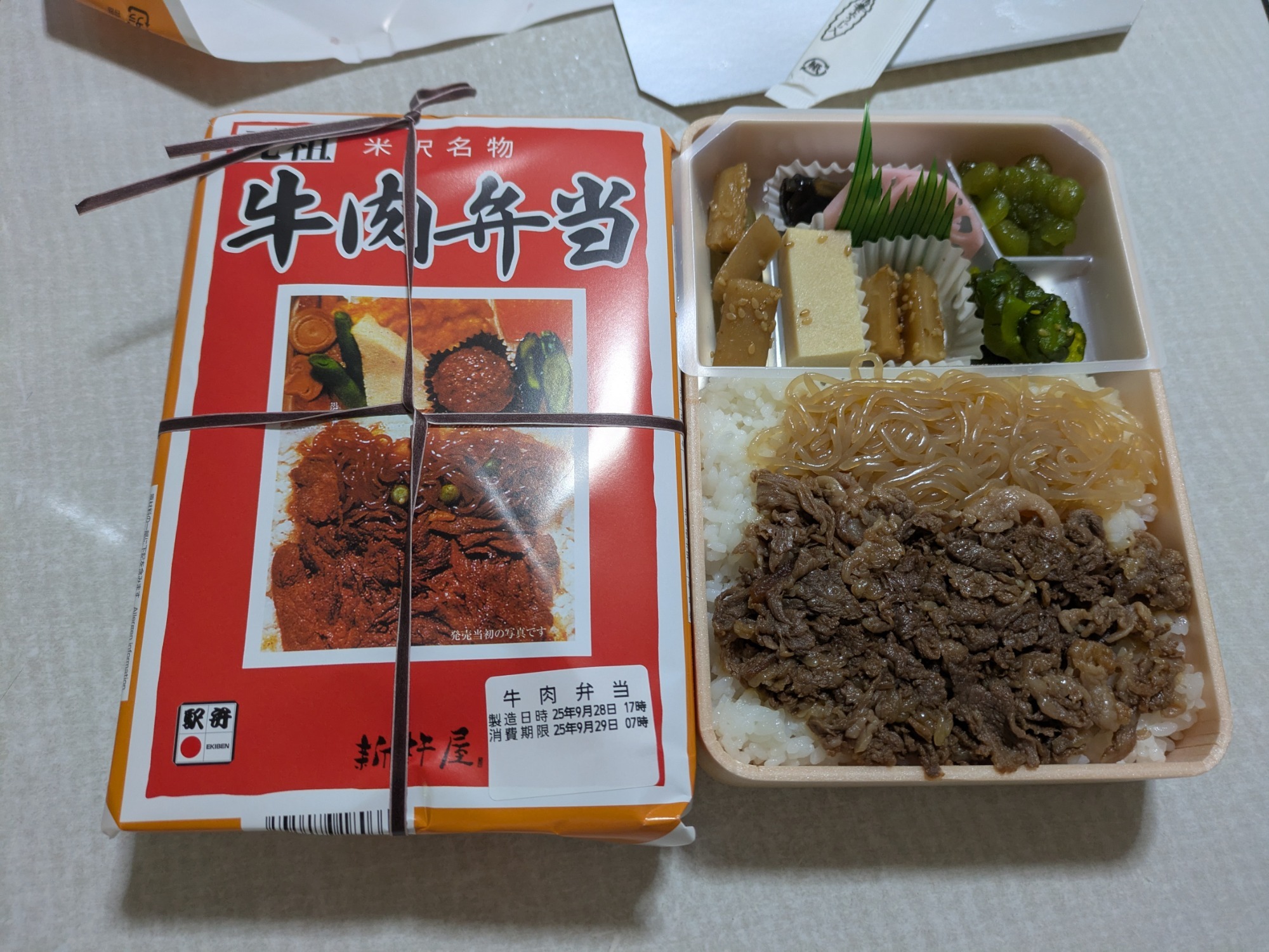 新幹線に乗車し走り始めたとこで弁当を食べることに(´艸`*)