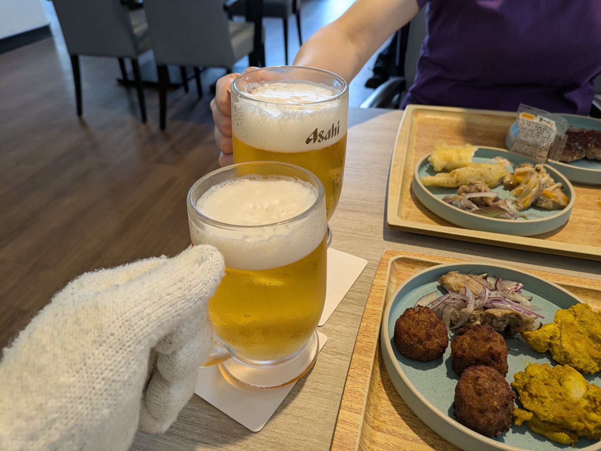 まずはビール🍺と唐揚げ、そこにキャベツ千切りでかんぱ~~~い🍻🍻🍻🍻